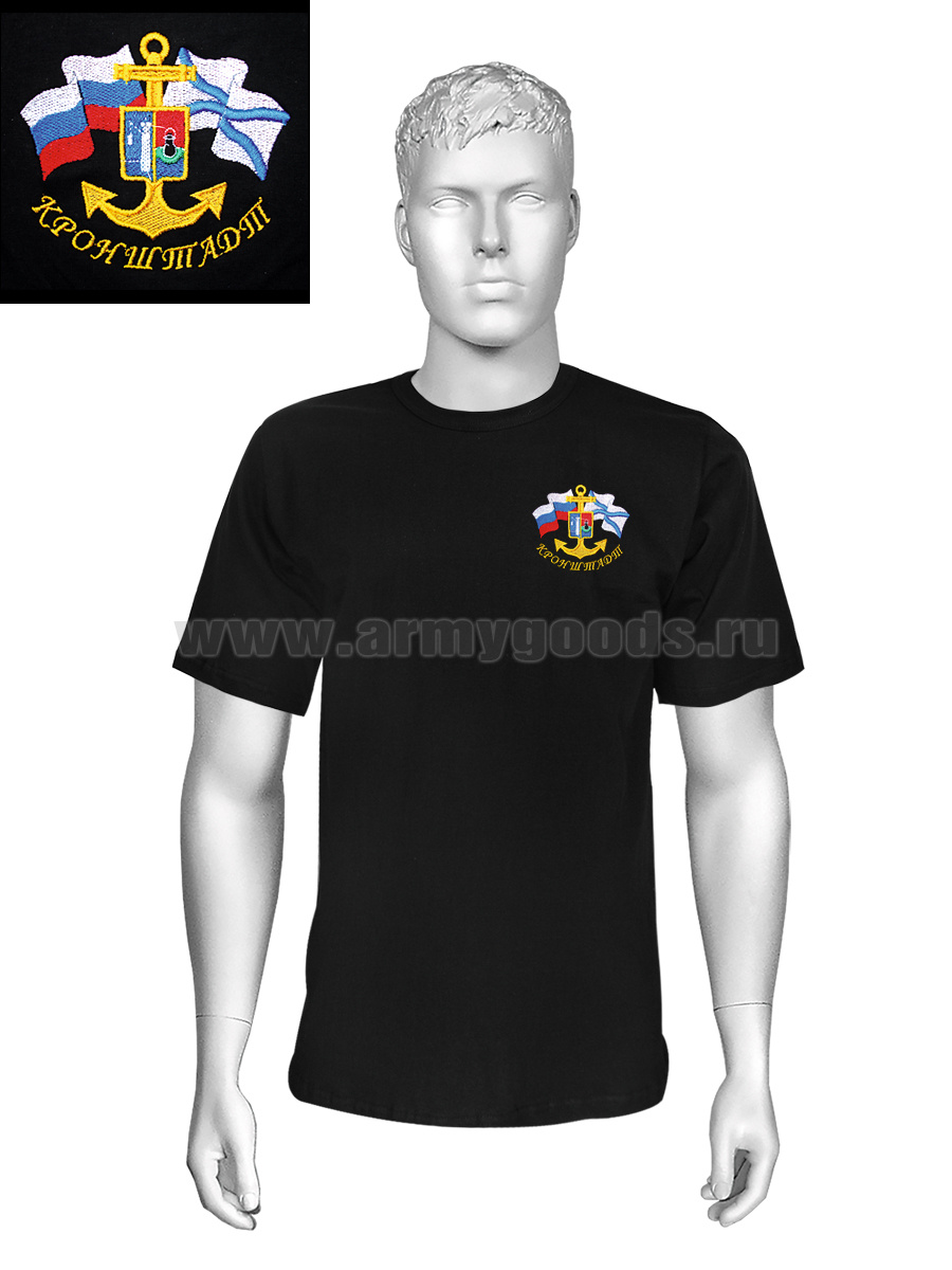 Футболка с вышивкой на груди Кронштадт, черная