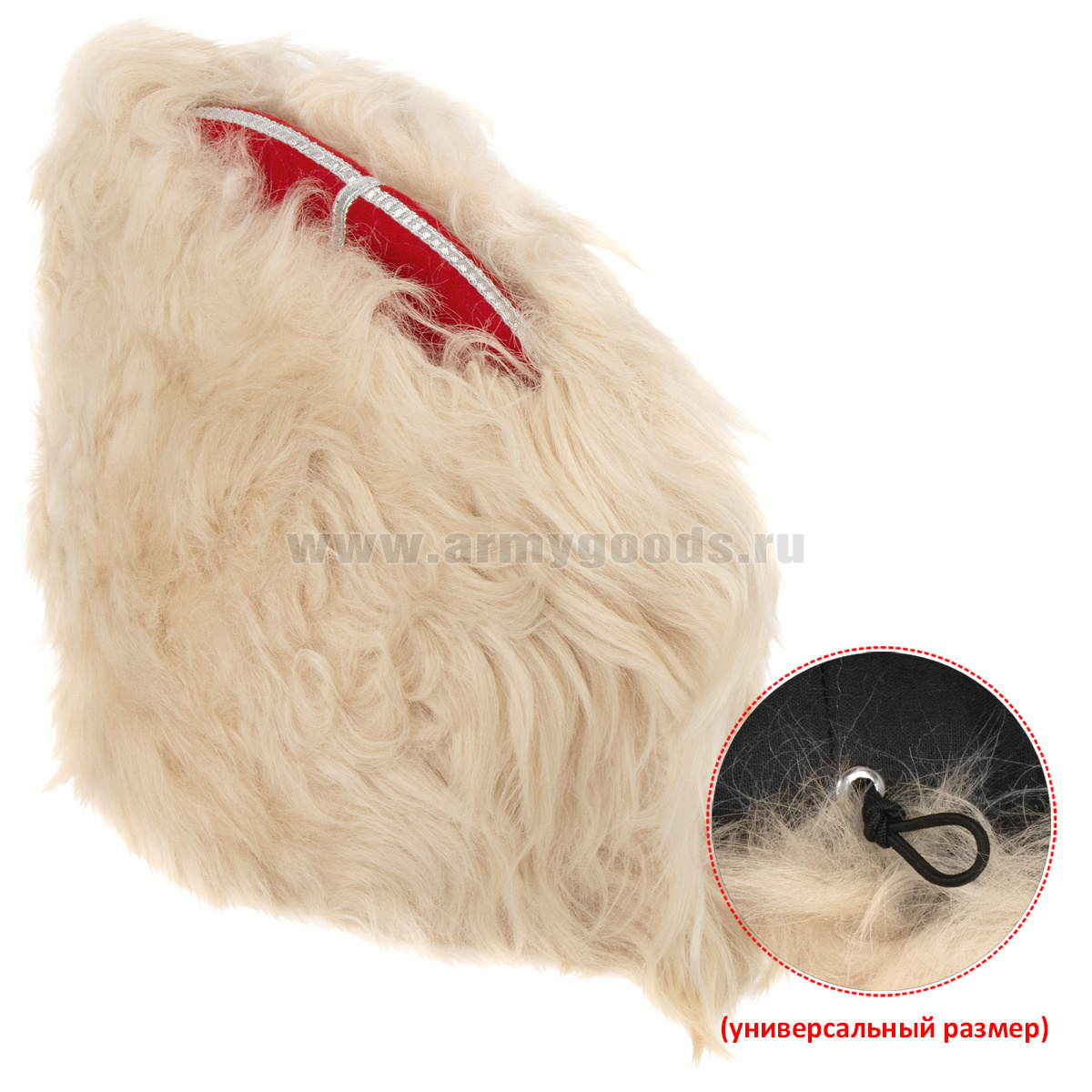Папаха казачья нат.мех белая (верх - алое сукно) универсальный размер
