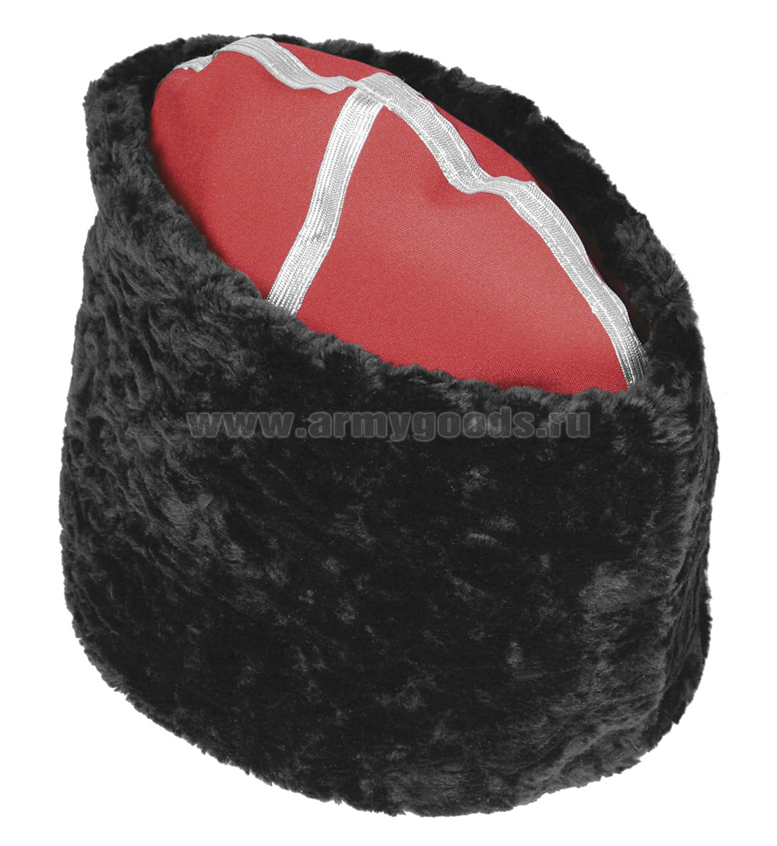 Папаха казачья иск. мех черная (верх - алое сукно) универсальный размер