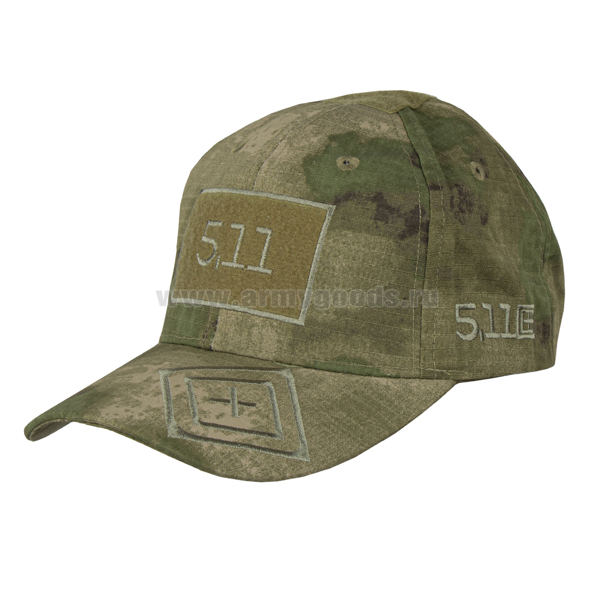 Бейсболка вышитая 5.11 ("мох" A-TACS FG) ткань "rip-stop" с 3 нашитыми липучками