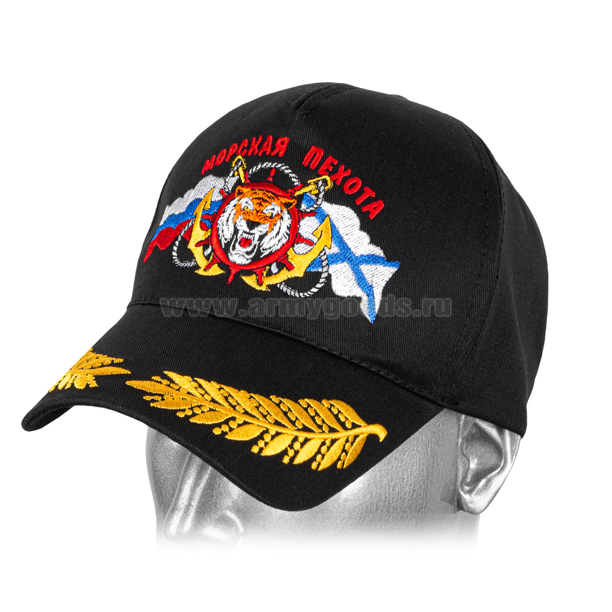 Бейсболка черная вышитая Морская пехота (тигр, флаги РФ и Андреевский)