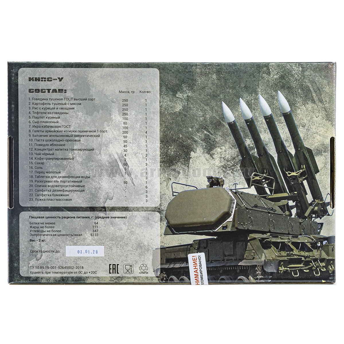 Сухпаек Армейские будни Солдатский (КНПС-У) срок годности до 12.2026