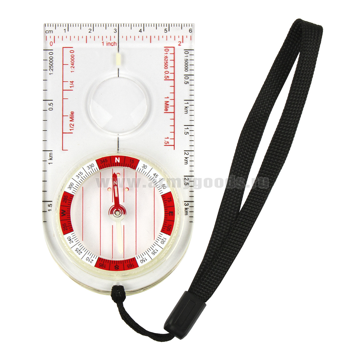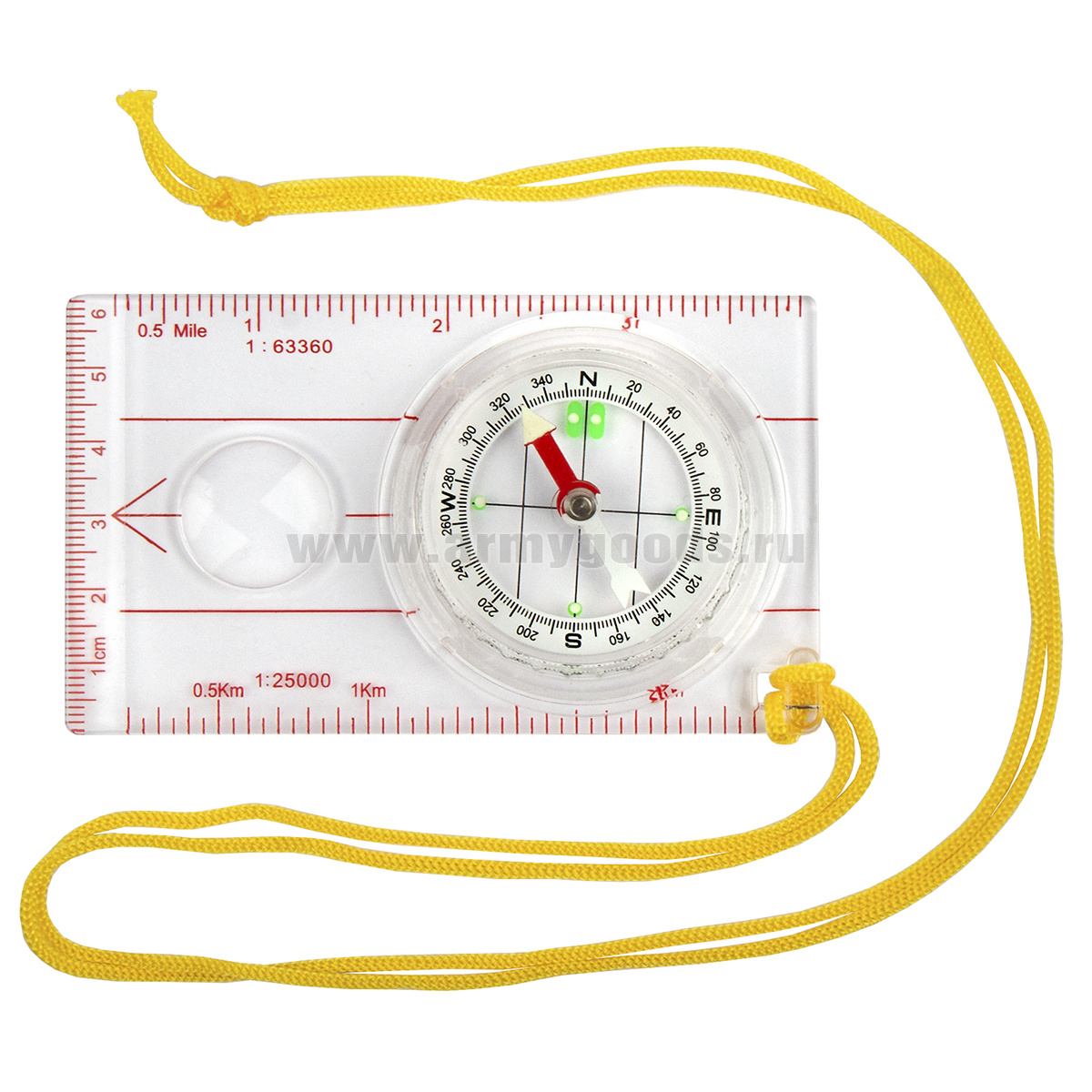 Компас жидк. с линейкой (10 см) и малой лупой, на шнурке (разновидности по наличию)