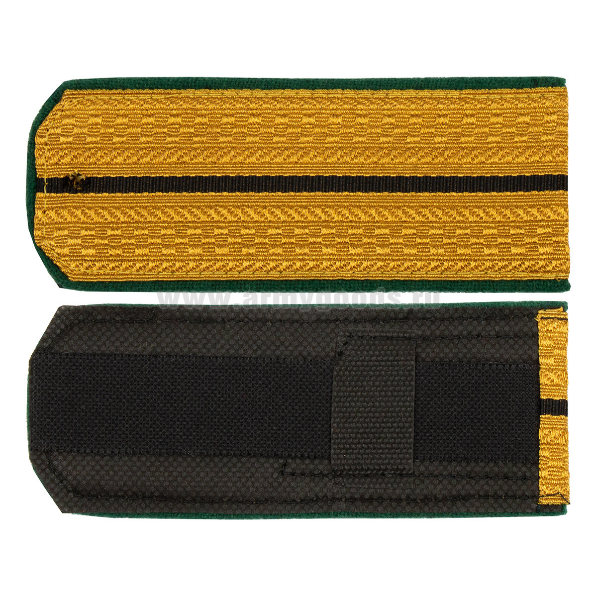Погоны парад. зол. мет. зел. кант 1 черн. пр. (с хлястиком)