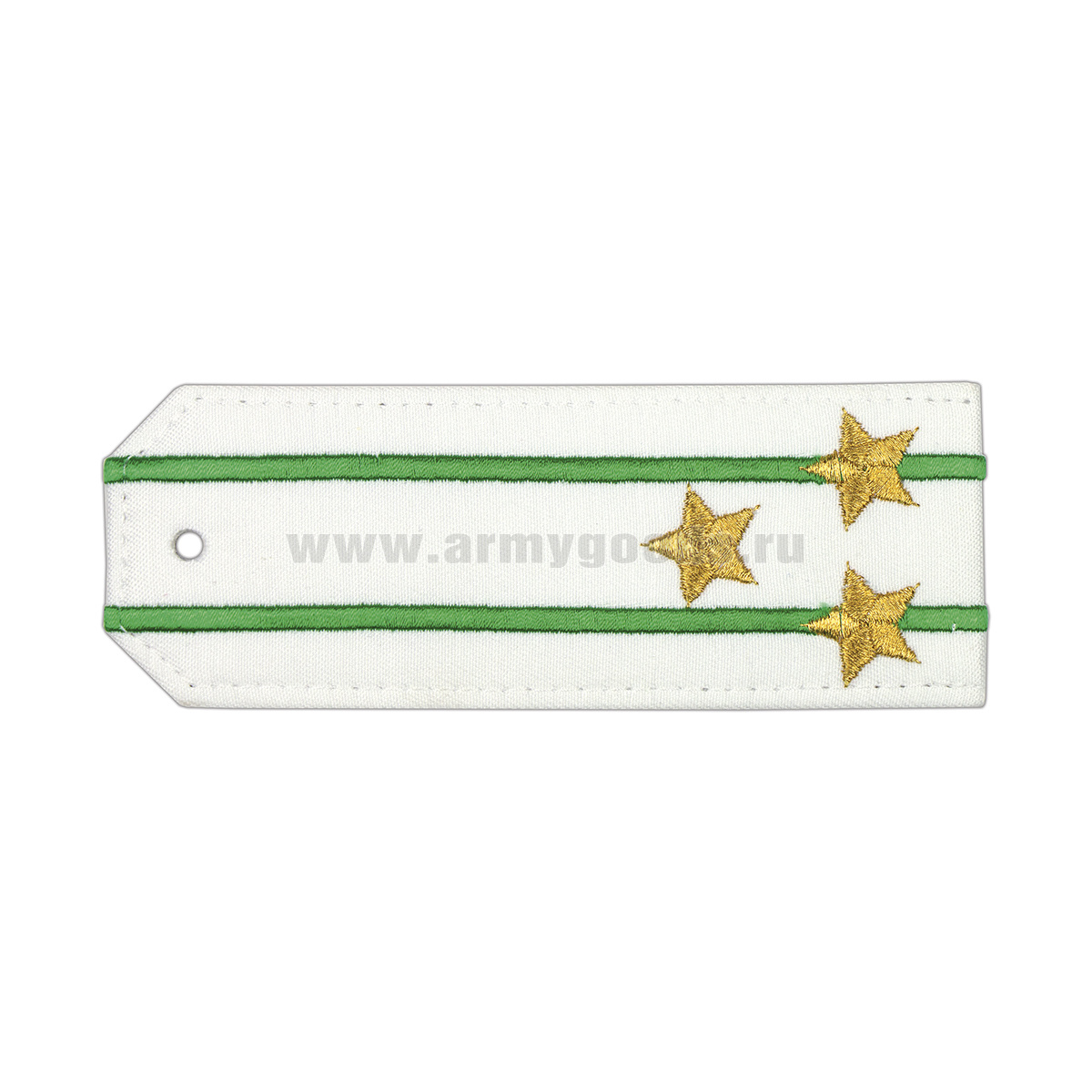Погоны «машинная вышивка» из рубаш. ткани белые с 2 вышит. зел. просв. с вышит. звездами (полковник)