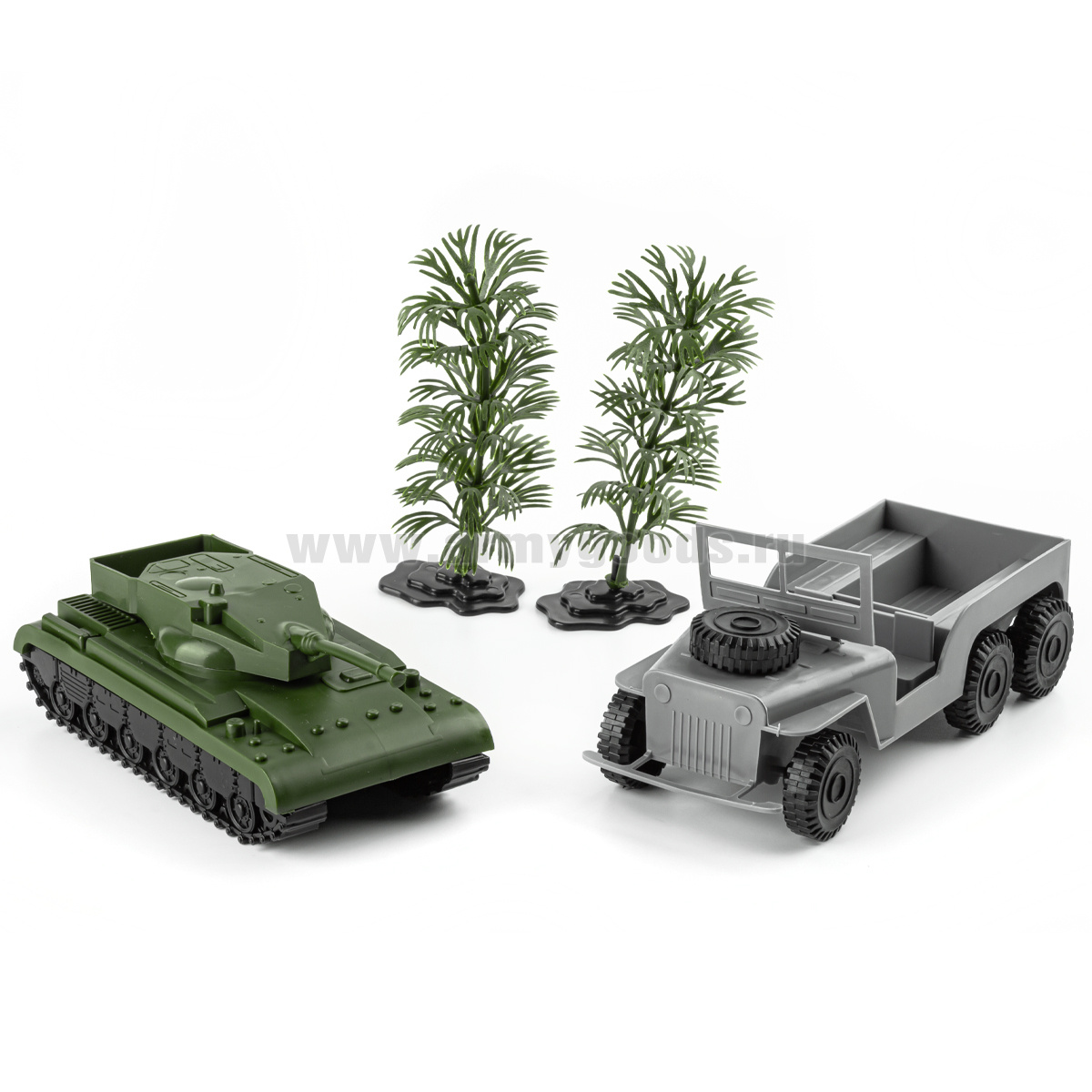 Набор игрушек пластмассовых "Бронегруппа" (машина 1 шт, танк 1 шт, кусты 2 шт) 12043