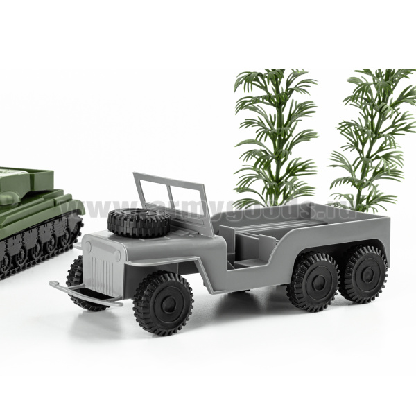 Набор игрушек пластмассовых "Бронегруппа" (машина 1 шт, танк 1 шт, кусты 2 шт) 12043