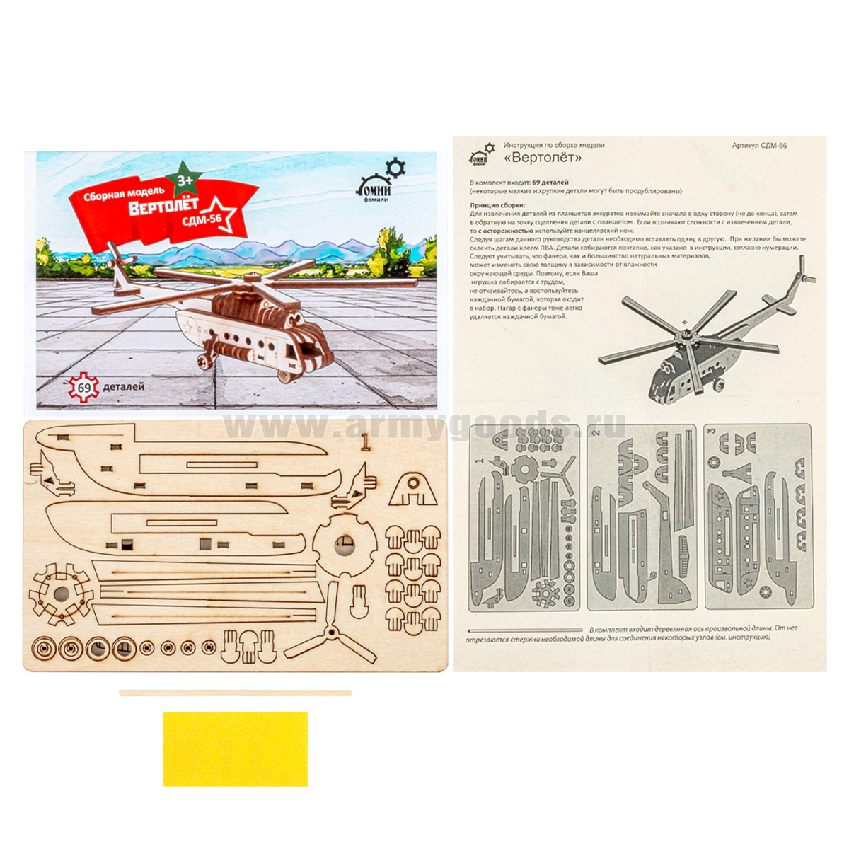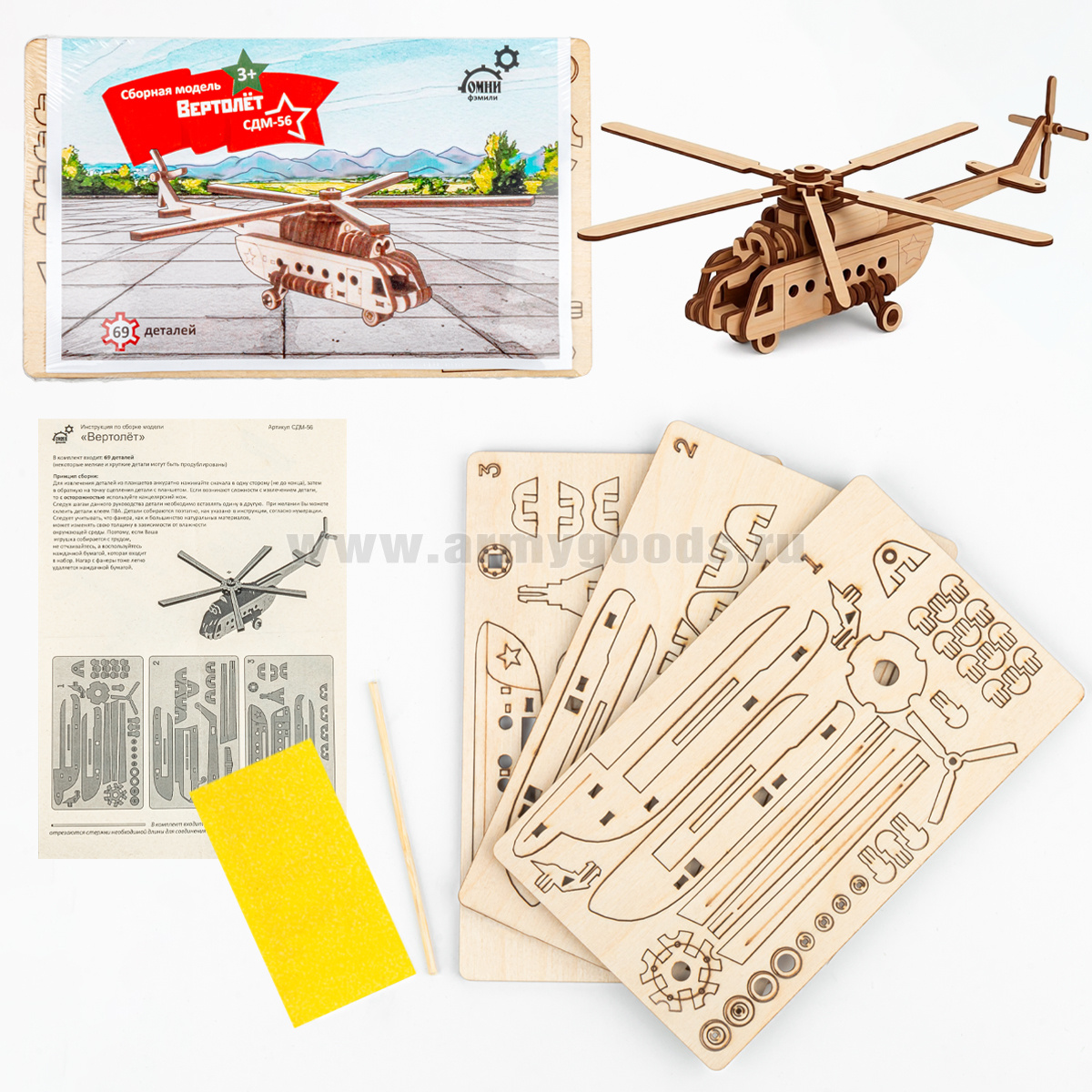 • Игрушка-конструктор деревянная Вертолет (сборная модель, 69 деталей) СДМ-56