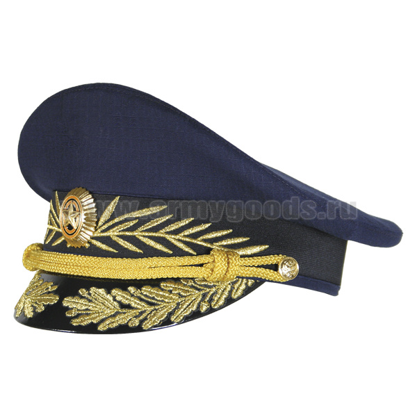 -Фуражка "машинная вышивка" генеральск. синяя ВВС (к офисному костюму)