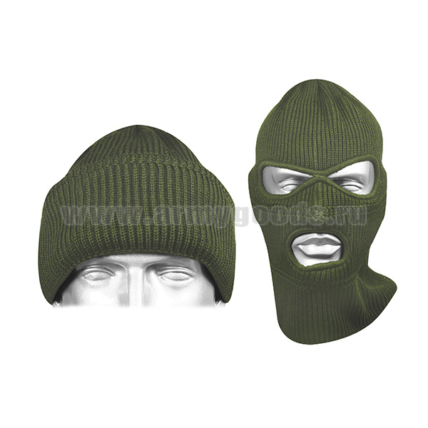 Шапка-маска вязаная п/ш оливковая М-10/М-442А