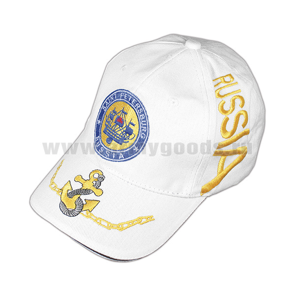 Бейсболка супервышивка Saint Petersburg (на козырьке якорь) белая