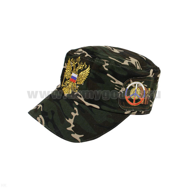 -Бейсболка кмф зеленая вышитая Орел РФ (флаг + знак пацифик)