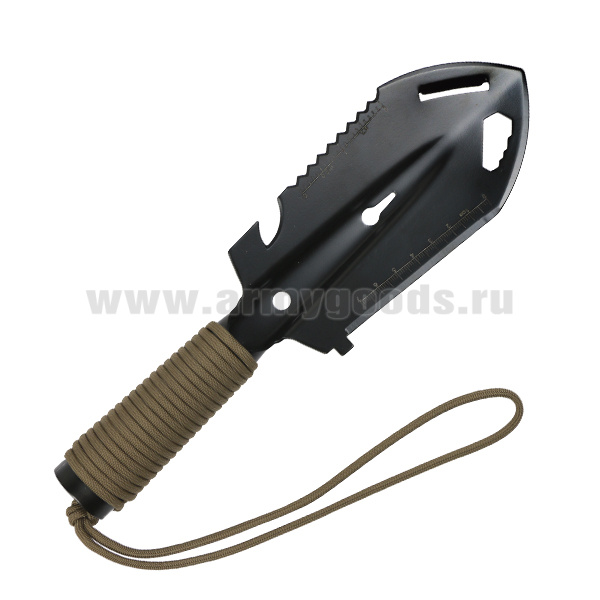 Лопатка универсальная (общая длина 26 см) черн (пила, гвоздодер, шестигранные ключи, угловая отвертка, открывашка, нож для снятия кожуры, паракордовая веревка)