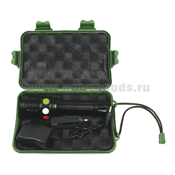 Фонарь тактический трехцветный High Power (в комплекте аккумулятор и сетевое зарядное устройство) в пластиковом кейсе