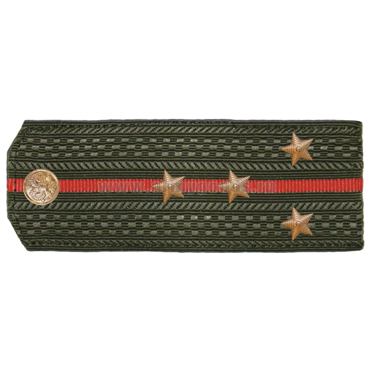 Погоны оливк. 1 красный просвет, укомпл. мет. фурнитурой (капитан) пластик