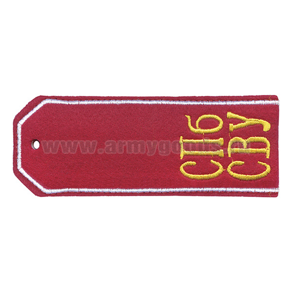 Погоны красн. суконные с вышитым белым кантом и желтыми буквами «СПб СВУ»