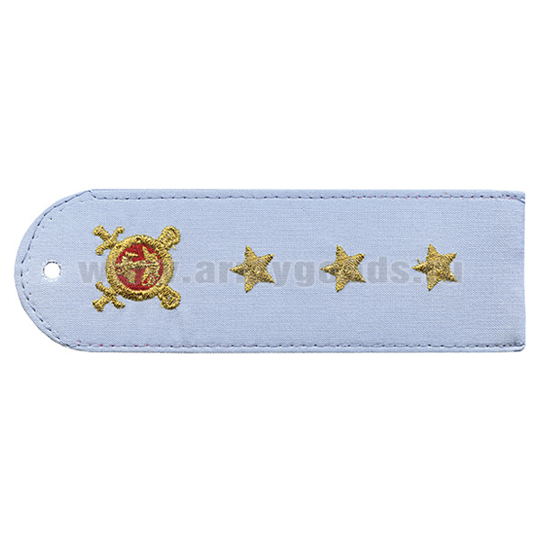 Погоны «машинная вышивка» из рубаш. ткани Полиция без канта бледно-голуб. с вышит. эмблемой (старший прапорщик) пластик