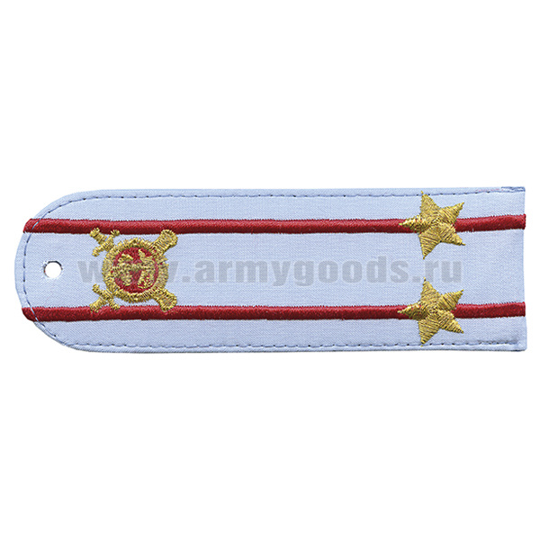 Погоны «машинная вышивка» из рубаш. ткани Полиция без канта бледно-голуб. с вышит. эмблемой (подполковник) пластик