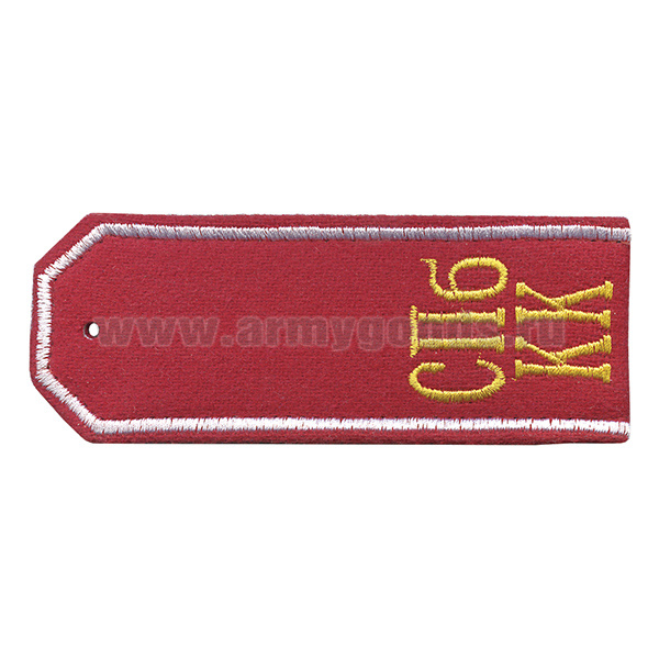 Погоны красн. суконные с вышитым белым кантом и желтыми буквами «СПб КК»