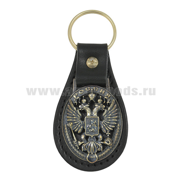 Брелок мет. (литье) на подкладке из нат. кожи Россия (орел РФ)