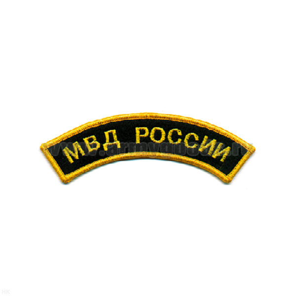 Нашивка на рукав дугов. вышит. МВД России (черн. фон)