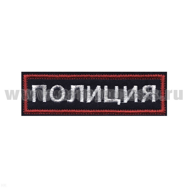 Нашивка на грудь вышит. Полиция (иссиня-черный фон ,красный кант, белые буквы) люрекс