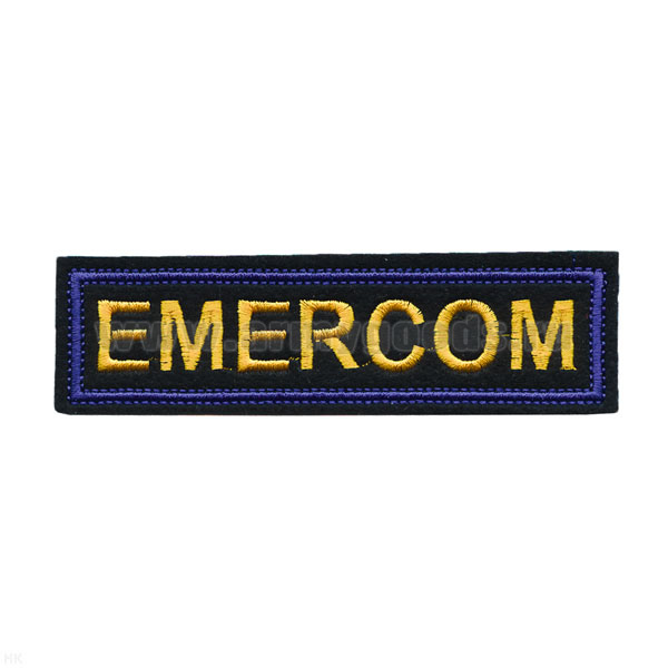 Нашивка на грудь вышит. Emercom (желт. буквы, син. окантовка) дл. 12,5 см