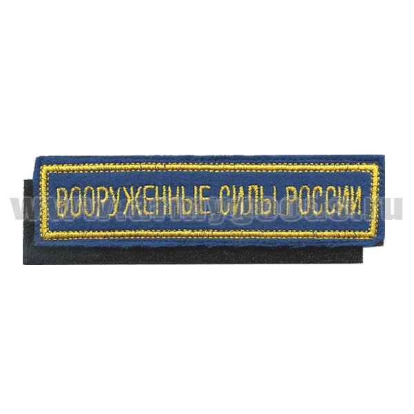 -Нашивка на грудь вышит. Вооруженные силы России (125x25 мм) васильковый фон, желтый кант (на липучке)