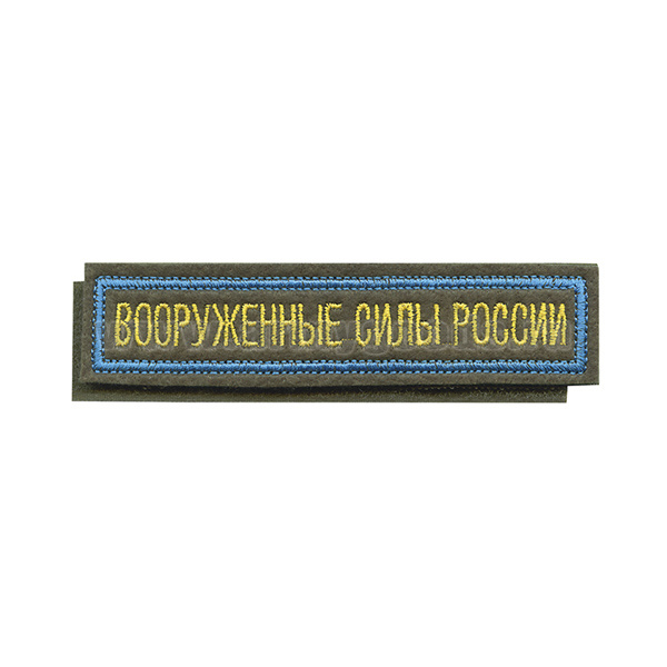 Нашивка на грудь вышит. Вооруженные силы России (125x25 мм) оливковый фон, голубой кант (на липучке)