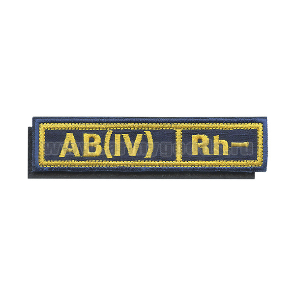 Нашивка на грудь вышит. Гр. кр. AB (IV) отрицат. (синий фон, ткань Rip-Stop) на костюм офисный (125x25 мм) на липучке