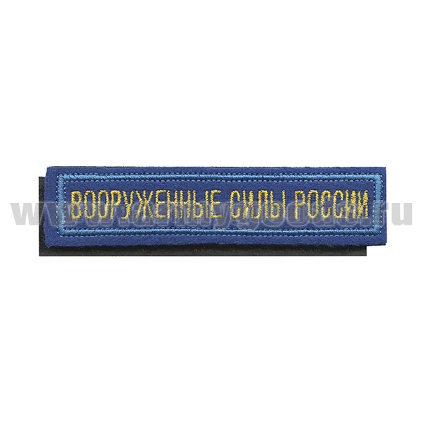 Нашивка на грудь вышит. Вооруженные силы России (125x25 мм) васильковый фон, голубой кант ЛИПУЧКА