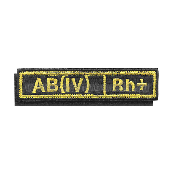 Нашивка на грудь вышит. Гр. кр. AB (IV) положит. (черн. фон, ткань Rip-Stop) на костюм офисный (125x25 мм) на липучке