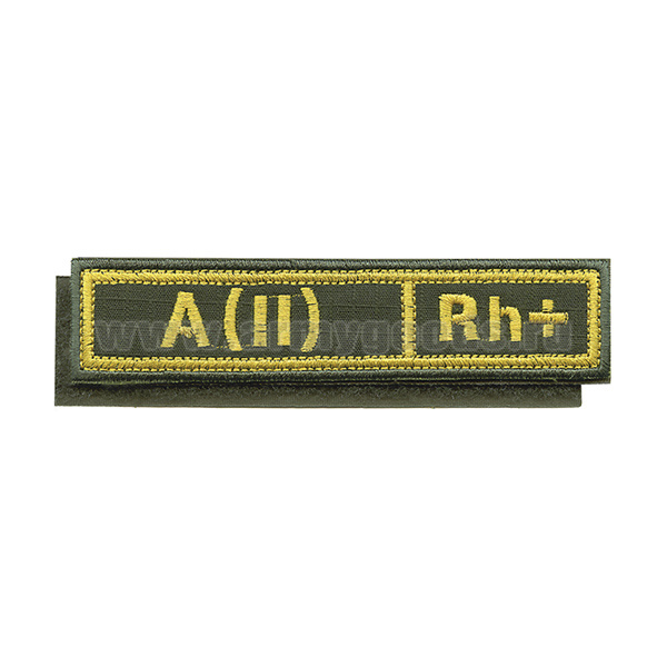 Нашивка на грудь вышит. Гр. кр. А (II) положит. (олив. фон, ткань Rip-Stop) на костюм офисный (125x25 мм) на липучке
