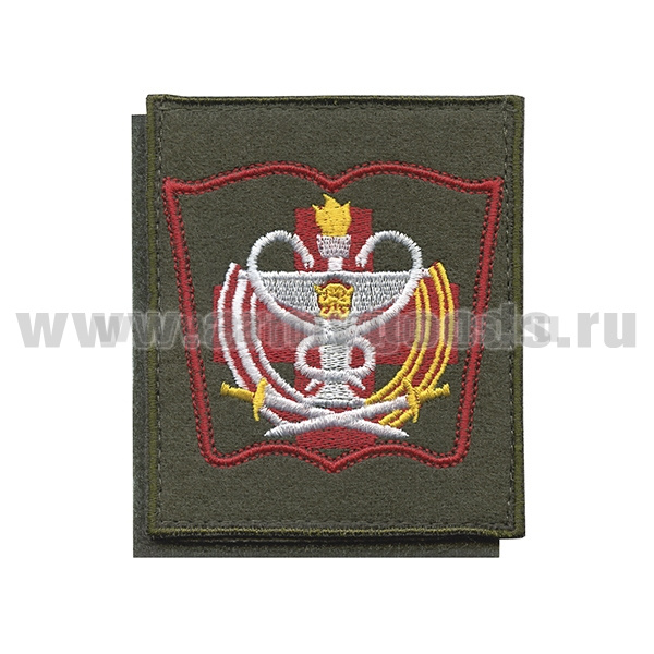 Шеврон вышит. ВМедА нов/обр (книжка) оливковый фон на ЛИПУЧКЕ (приказ №300 от 22.06.2015)