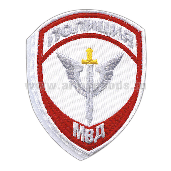 Шеврон вышит. Полиция МВД Спецназ нов/обр (приказ №777 от 17.11.20) белый на липучке