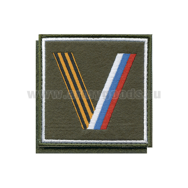 Шеврон вышит. V (оливковый фон, вышивка триколор/гвардейск., квадратн.) на липучке
