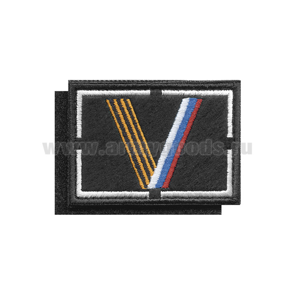 Шеврон вышит. на кепку V (черн фон, вышивка триколор/гвардейск) 70х50 мм на липучке