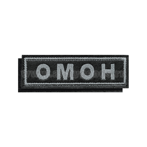 Нашивка на грудь вышит. ОМОН (черный фон, серая вышивка) на липучке