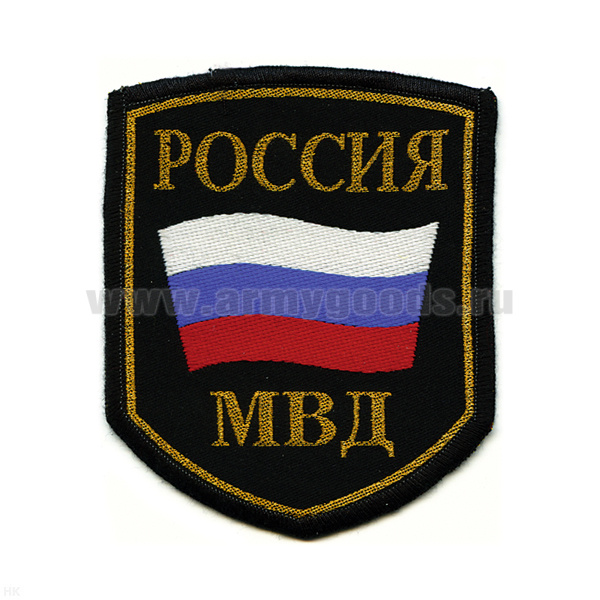 Шеврон тканый Россия МВД (5-уг. с флагом)