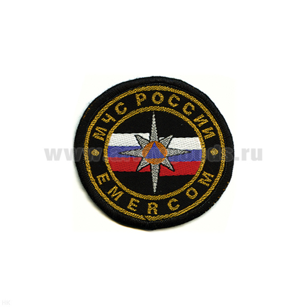 Шеврон тканый МЧС России EMERCOM (кругл.) мал. черн.
