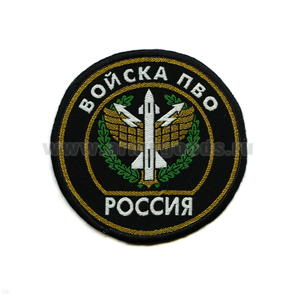 Шеврон тканый Россия Войска ПВО (кругл. с эмбл. и надп.)