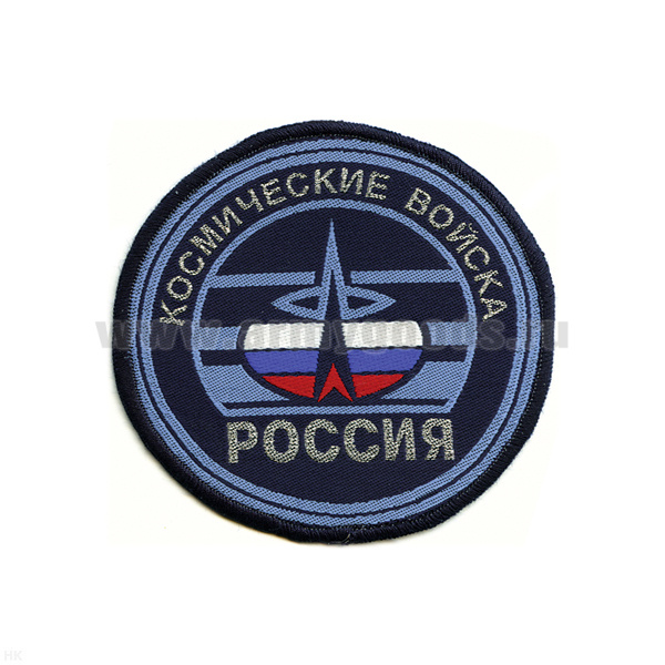 Шеврон тканый Россия Космич. войска (кругл. с эмбл. и надп.)