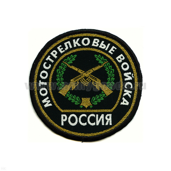 Шеврон тканый Россия Мотостр. войска (кругл. с эмбл. и надп.)
