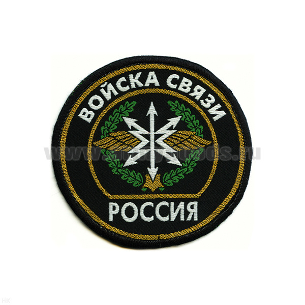 Шеврон тканый Россия Войска связи (кругл. с эмбл. и надп.)