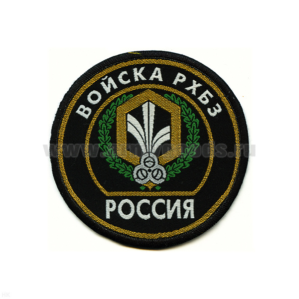 Шеврон тканый Россия Войска РХБЗ (кругл. с эмбл. и надп.)