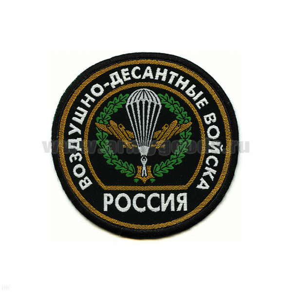 Шеврон тканый Россия ВДВ (кругл. с эмбл. и надп.) черн.