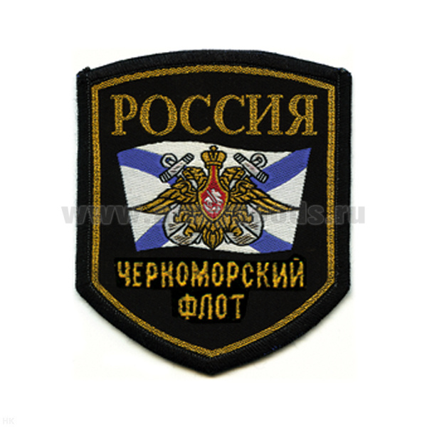 Шеврон тканый Россия ЧФ (5-уг. с флагом и орлом)