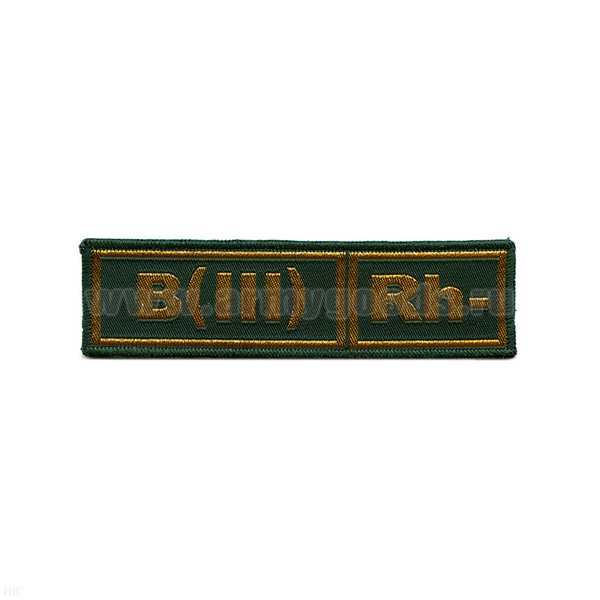 Нашивка на грудь тканая Гр. кр. B (III) отрицат. (зел. фон)