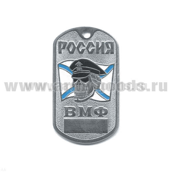 Жетон (нерж. ст., эмал.) Россия ВМФ (череп в черн. фуражке на фоне андреевского флага)