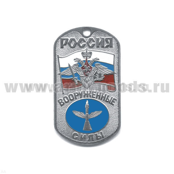 Жетон (нерж. ст., эмал.) сер. Россия ВС (с орлом РА на флаге РФ) космические войска ст/обр